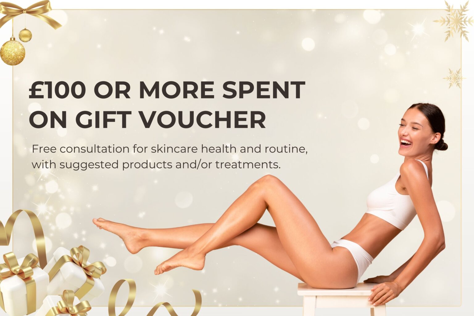 £100 or more spent on Gift Voucher (general voucher) = Free consultation for skincare health and routine, with suggested products and/or treatments