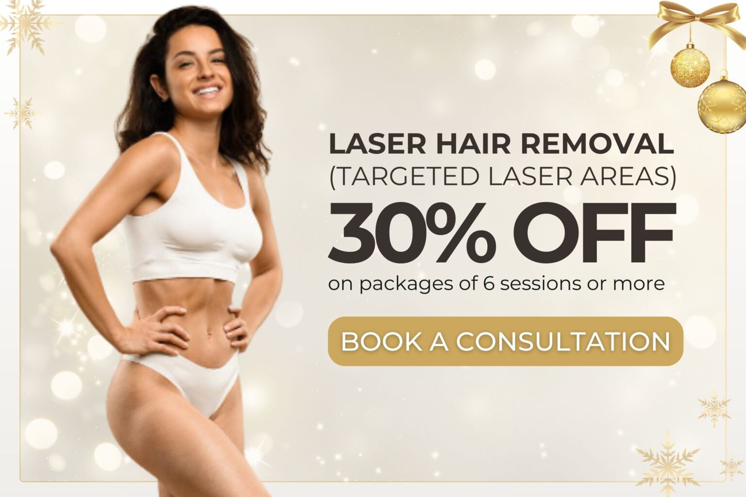 30% off targeted laser areas, minimum 6 sessions per target area or more